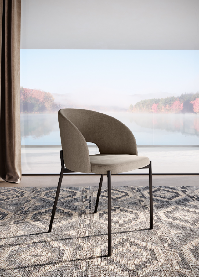 De mjuka linjerna och noggrannheten i detaljerna gör denna stol perfekt för moderna vardagsrum och matsalar. Det är det perfekta valet för dig som söker en välkomnande men diskret sits med en minimalistisk känsla.