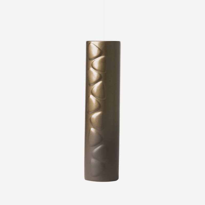 Pendellampa i blankglaserad keramik eller metallic-finish.