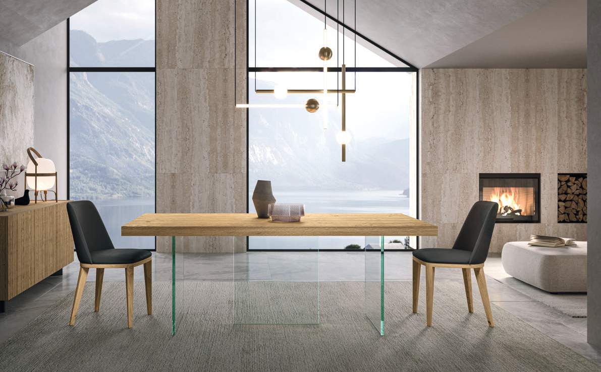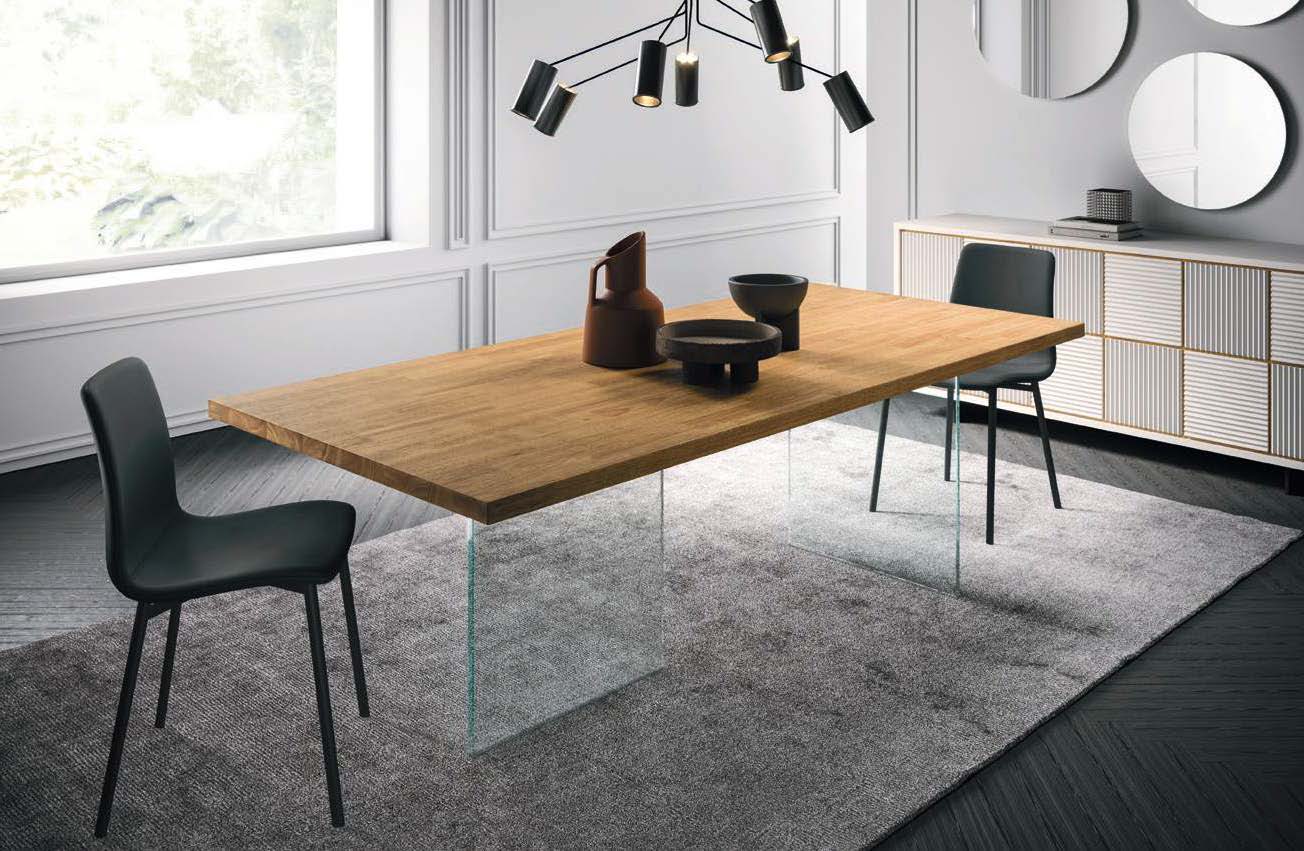 Det transparenta glaset ger bordet en modern och lätt känsla, vilket gör att bordsskivan ser ut att sväva. Det är just genomskinligheten i detta underrede som ger det dess namn, GHOST.