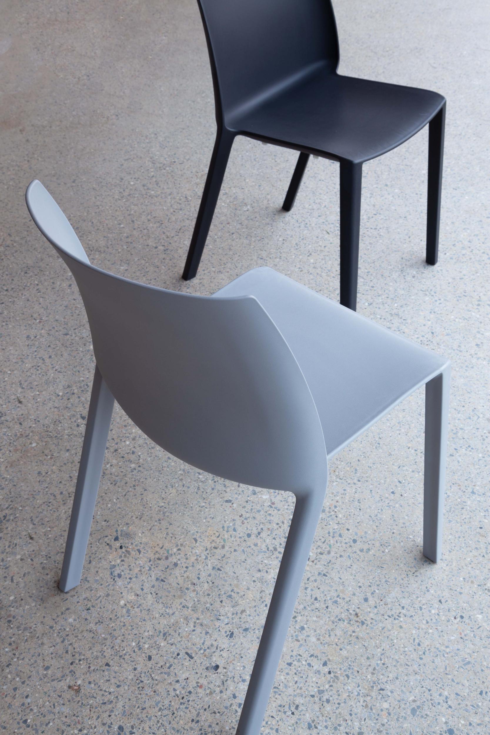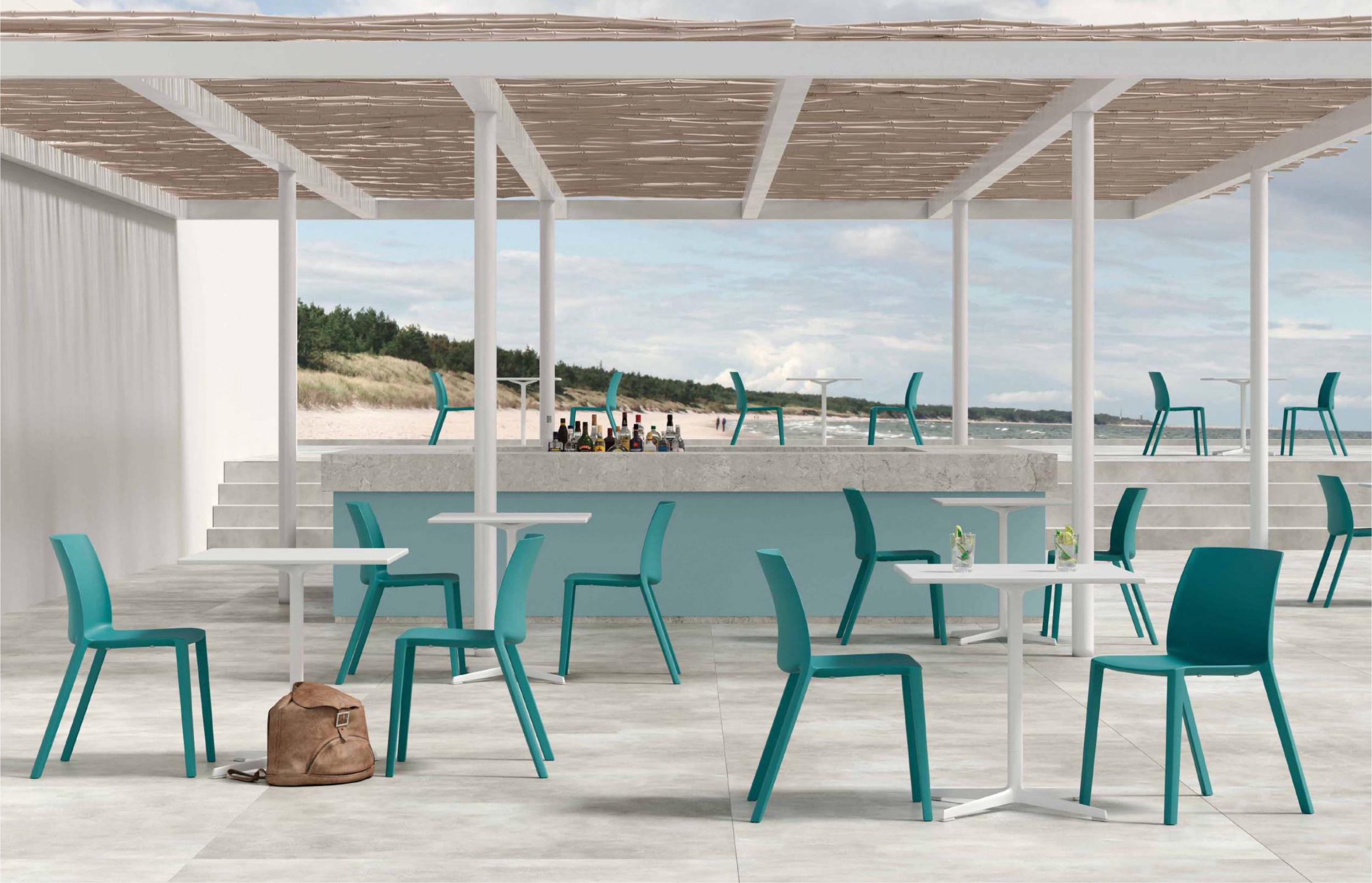 Denna stol, tillverkad av högkvalitativ polypropen, finns i tre eleganta färger: vit, svart och blågrön.