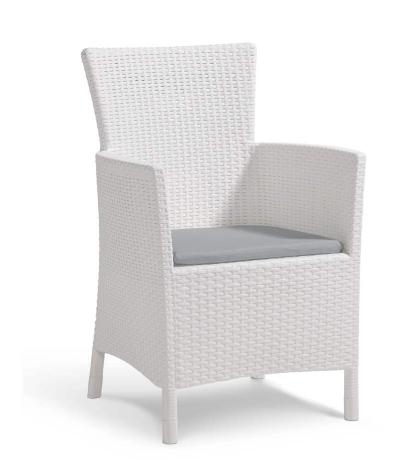 Iowa-fåtöljen från Keter är ett elegant och hållbart trädgårdstillbehör, perfekt för att möblera terrasser, balkonger, trädgårdar eller verandor med stil.