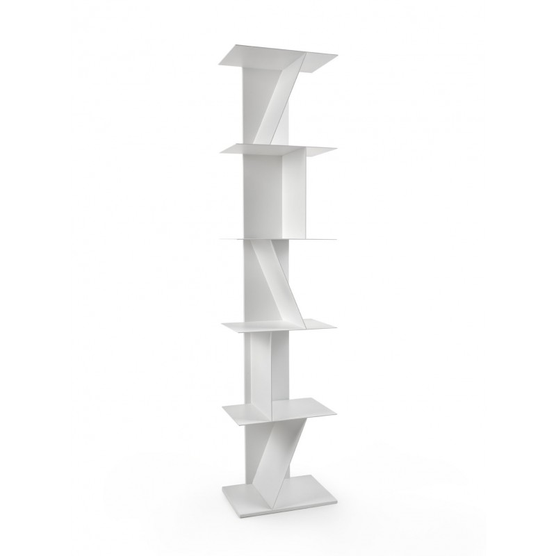 Giove är tillverkad av målat stål och utmärker sig med sina smala hyllplan , arrangerade vertikalt, horisontellt och i 45 graders vinkel. Detta geometriska samspel ger bokhyllan en stark grafisk karaktär och förvandlar den till ett inredningstillbehör som drar uppmärksamhet till sig och ger stil till vilket utrymme som helst.