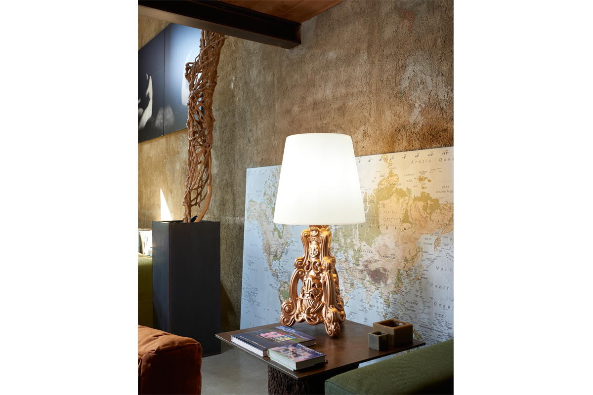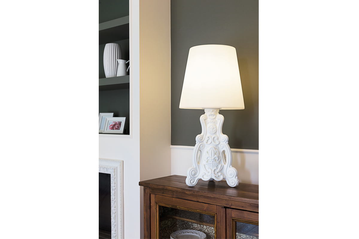 Bordlampan Lady of Love är en del av Design of Love-kollektionen , skapad av formgivarna Graziano Moro och Renato Pigatti. Med sin omisskännliga stil kombinerar Lady of Love klassicism och elegans: den väcker känslor, förtrollar och drar till sig uppmärksamhet. Inspirerad av den klassiska sänglampan erbjuder den en originell nytolkning av en stor barockklassiker.