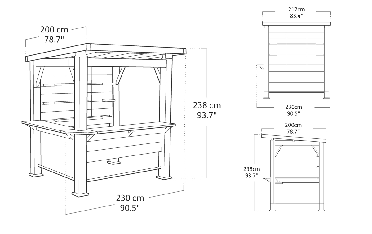Förvandla din trädgård till den perfekta platsen för fester, cocktails och avkopplande stunder med vänner och familj. Tillverkad av DecoCoat-harts med träeffekt är den väderbeständig, UV-beständig och kräver lite underhåll. De förstärkta metallrören och de robusta fötterna säkerställer stabilitet och hållbarhet och erbjuder skydd mot sol, regn och snö året runt.