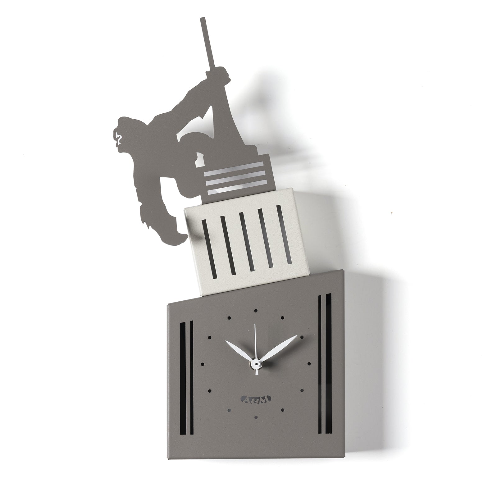 Den berömda gorillan avbildas klättrandes upp till toppen av byggnaden, en gest som fångar all spänning och kraft i den ursprungliga filmscenen. Ett djärvt och effektfullt grafiskt designval som förvandlar klockan till en sann väggskulptur.