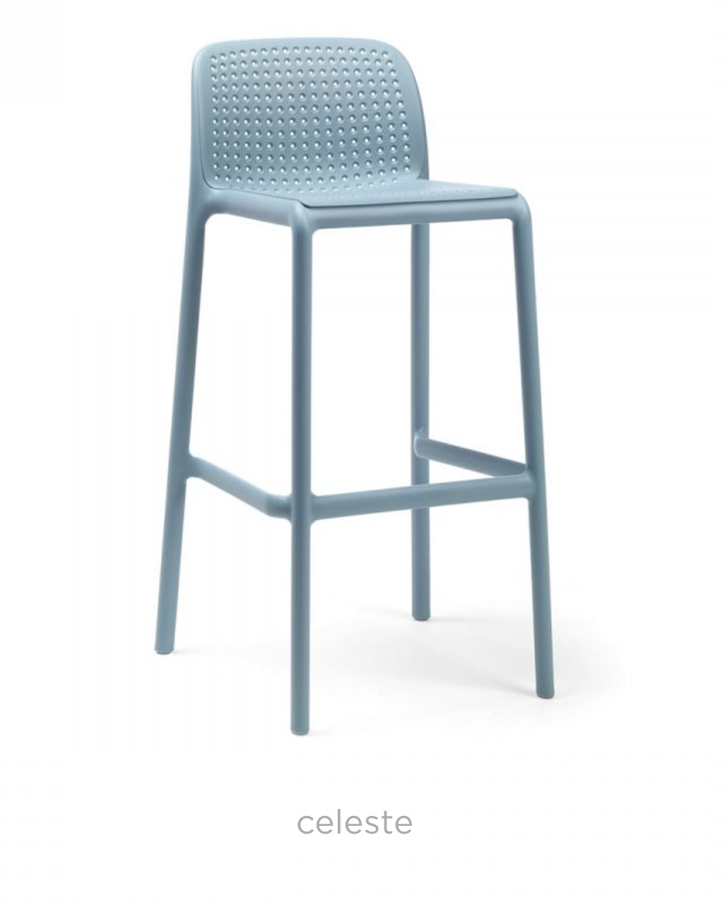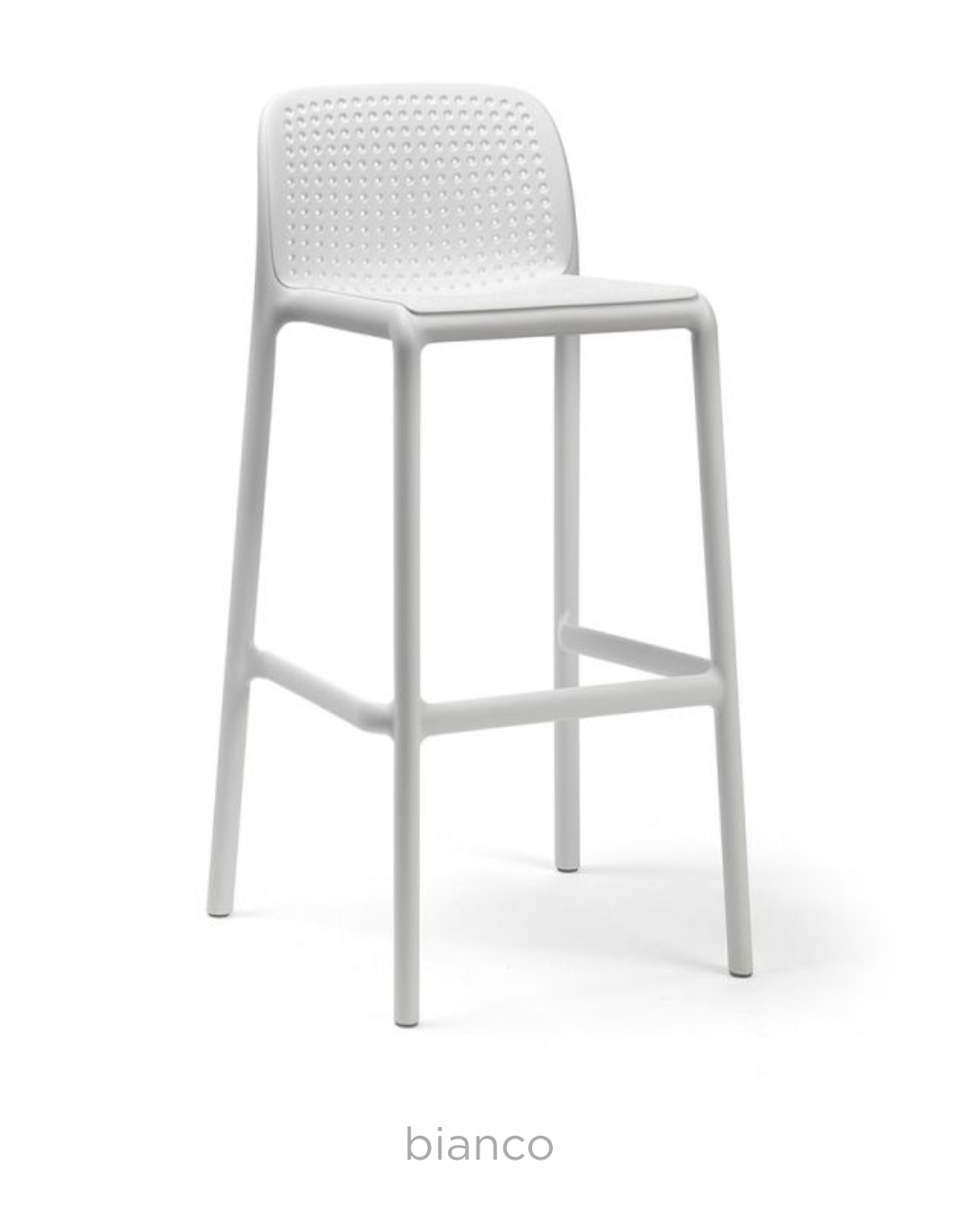 Monobloc-pall. UV-behandlad, massfärgad glasfiber av polypropen. Matt yta. Utrustad med halkfria fötter. Sitthöjd 76 cm. Återvinningsbar harts.