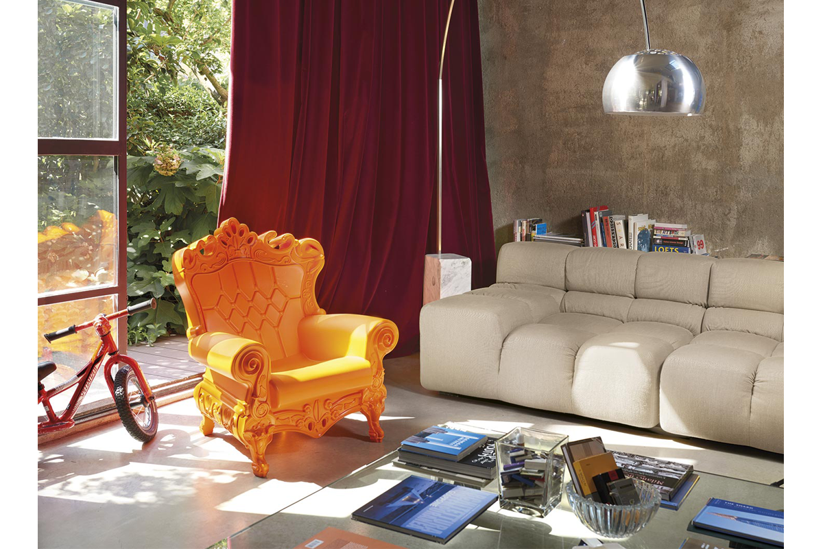 Fåtöljen Little Queen of Love är en del av den ursprungliga produktlinjen Design of Love Collection som nyligen presenterades av SLIDEe, och kännetecknas av detaljer och finish i rokokostil.