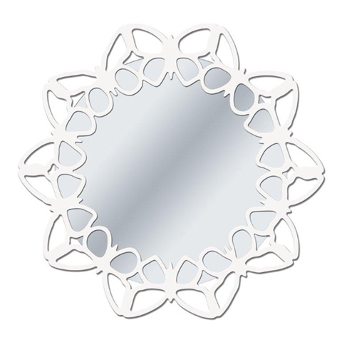 Perforerad och lackerad spegel med upphöjda element.
