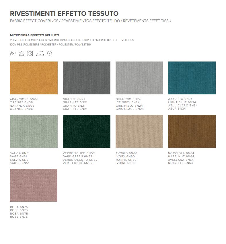 Mikrofiber med sammetseffekt i färgerna grafit , is , hasselnöt , ljusblå , mörkgrön