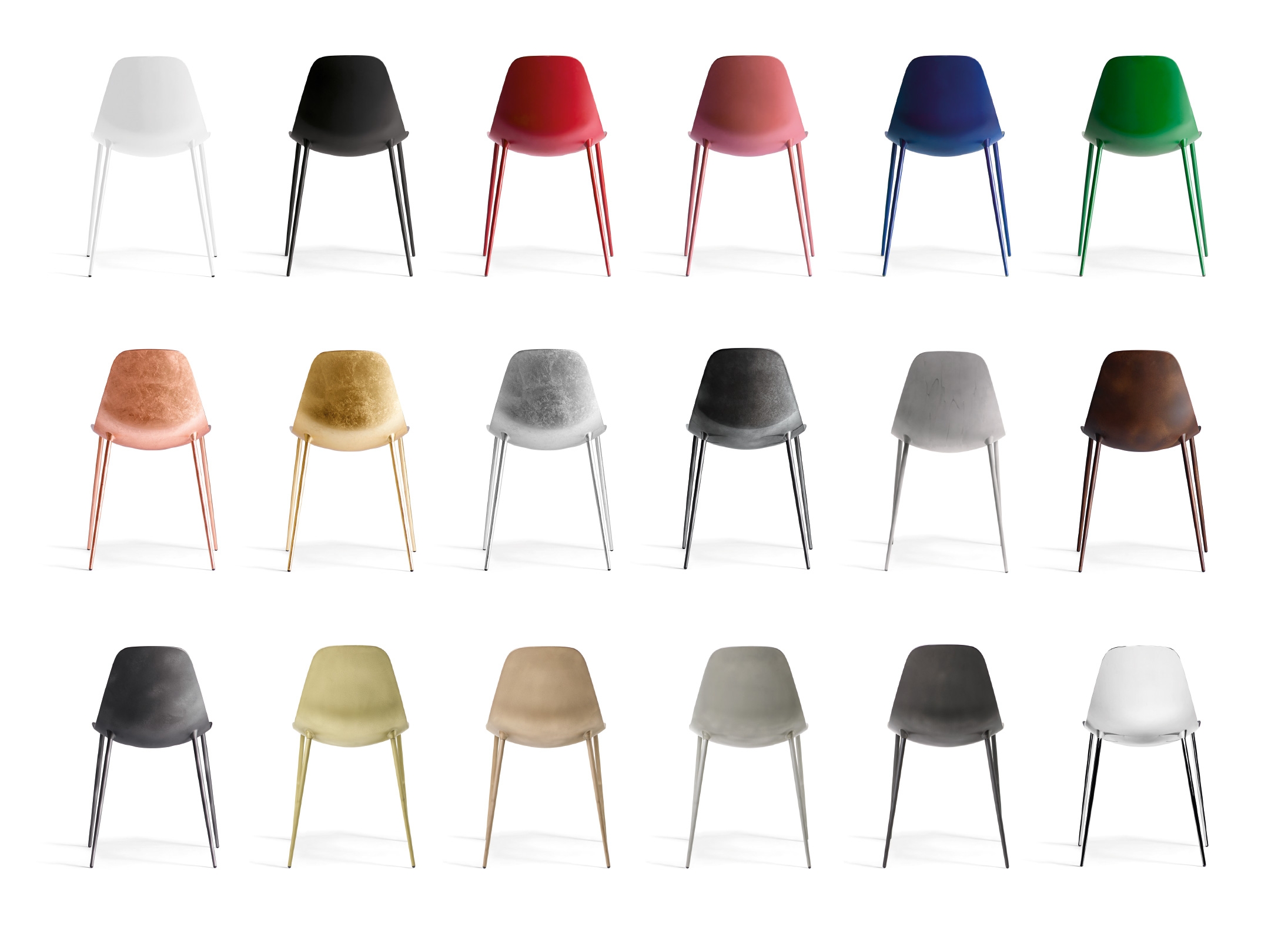 Ytbehandlingar: MAMMA IMP X stapelbar spegel/krom aluminium, MAMMA IMP LG stapelbar bladguld, MAMMA IMP LS stapelbar bladsilver, MAMMA IMP LC stapelbar kopparblad
