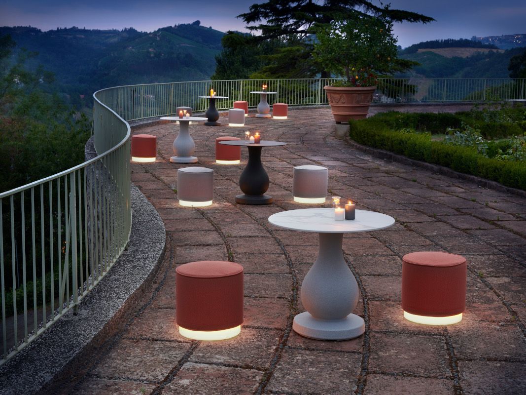 Med sin bekväma, vattentäta kudde och minimalistiska design kompletterar Mara-puffen elegant och enkelt Mara-kollektionen, som inkluderar Mara-loungefåtöljen och Mara-soffan för två personer. Basen kan hysa all magi med trådlös belysning tack vare möjligheten att integrera den Bluetooth-aktiverade Candy Light RGB.