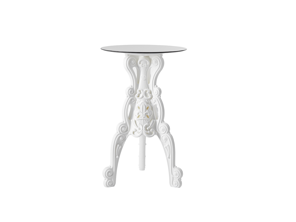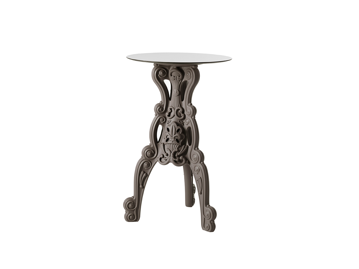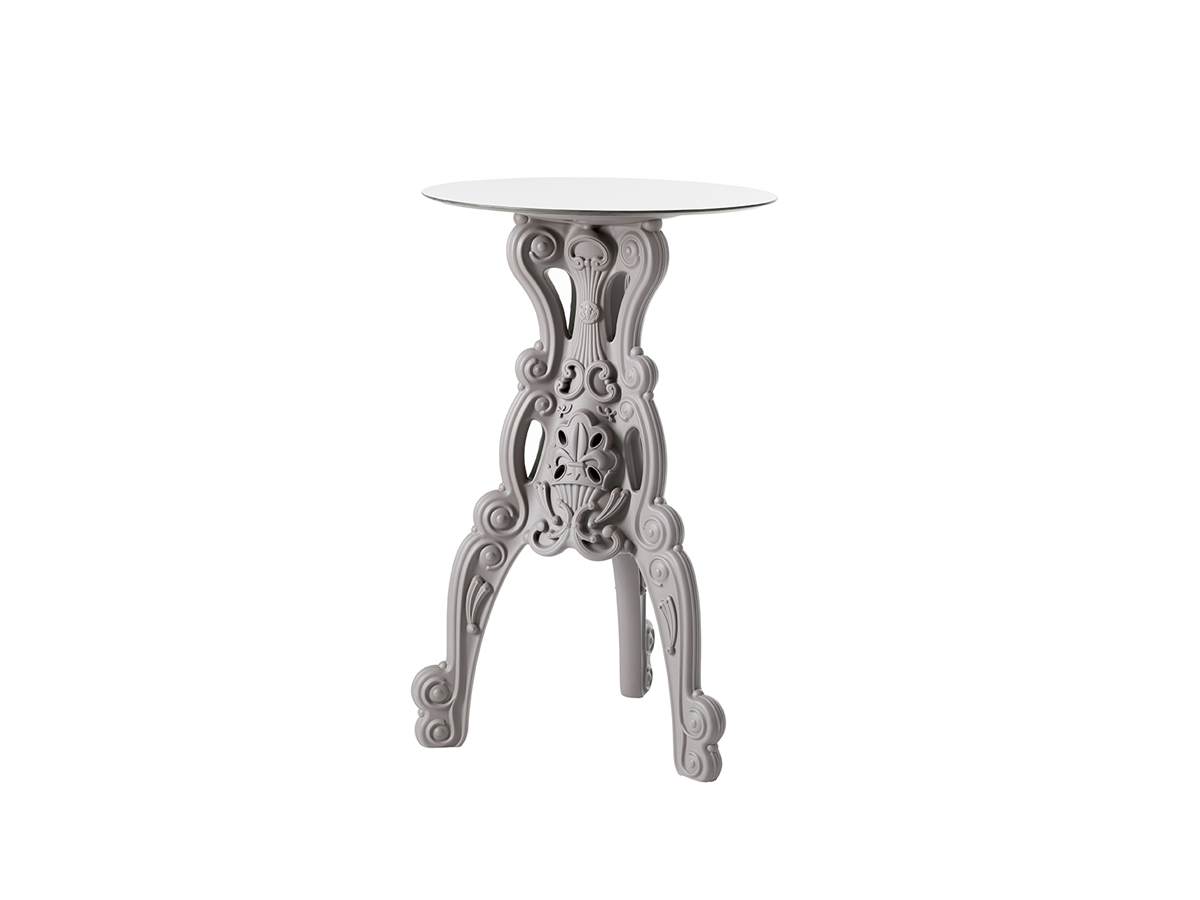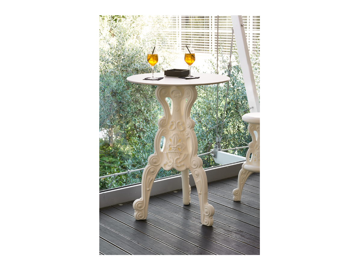Det höga bordet MASTER OF LOVE är en del av Design Of Love-kollektionen och frammanar samma ironiska och lyxiga anda. Med sina välvda ben, karakteristiska för barockbord, men med moderna material, passar produkten för både inomhus- och utomhusmiljöer och kommer garanterat att dra blickar till sig.
