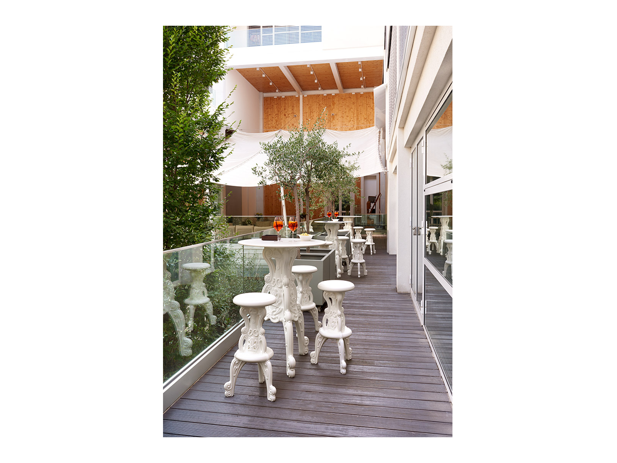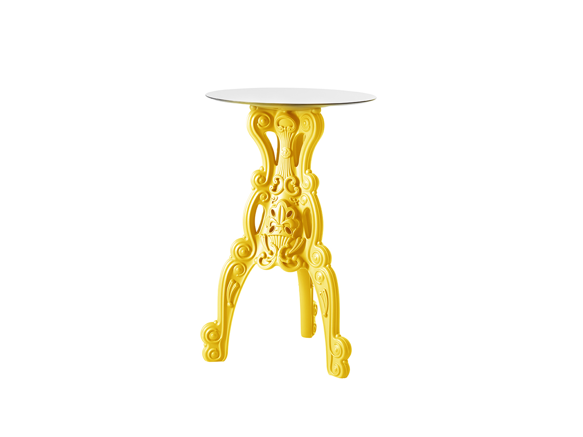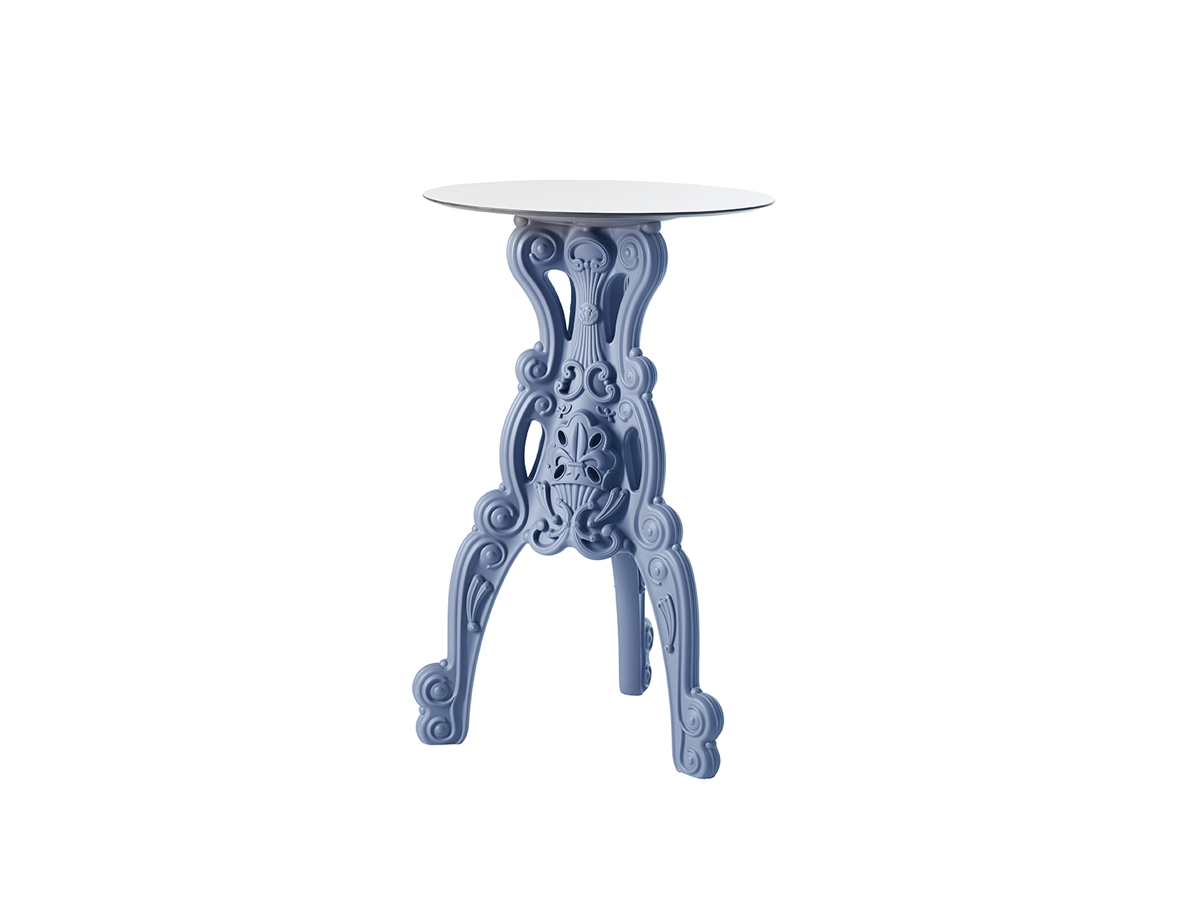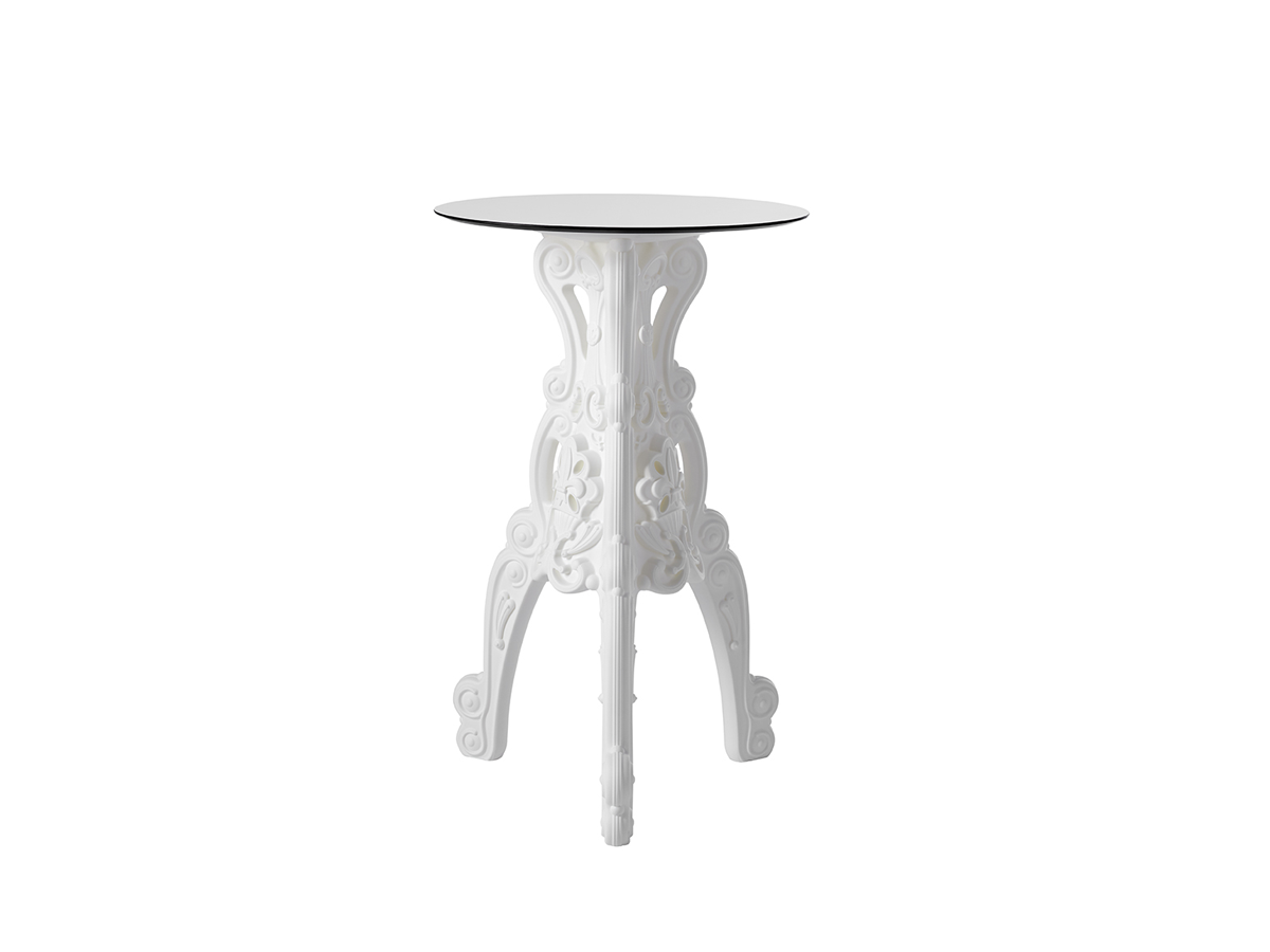 Det höga bordet MASTER OF LOVE är en del av Design Of Love-kollektionen och frammanar samma ironiska och lyxiga anda. Med sina välvda ben, karakteristiska för barockbord, men med moderna material, passar produkten för både inomhus- och utomhusmiljöer och kommer garanterat att dra blickar till sig.