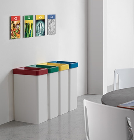Avtagbar övre påshållare med central springa för avfallshantering, tillverkad helt av stöttålig teknopolymer, utrustad med rundade säkerhetskanter, finns i grått, rött, grönt, gult, blått och vitt.