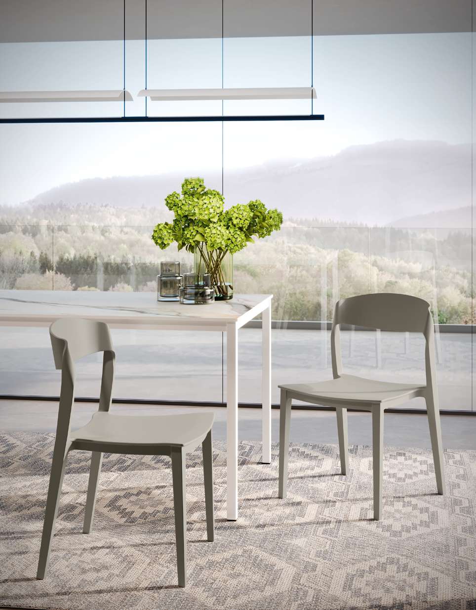 Det är en förfinad och funktionell lösning för moderna och samtida utrymmen. Med rena linjer och en ren design utmärker den sig med sin målade metallram och ergonomiska sits i polypropen, vilket ger komfort och funktionalitet.