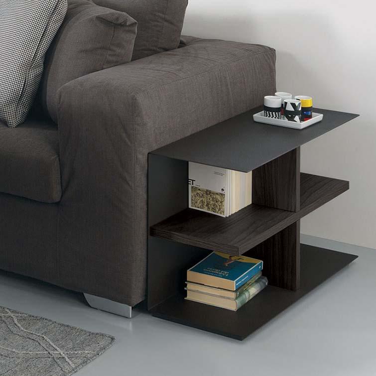 SLIM multifunktionell möbel, designad för att placeras bredvid soffan, med en sandmålad stålkonstruktion och en 25 mm miljövänlig laminathylla.