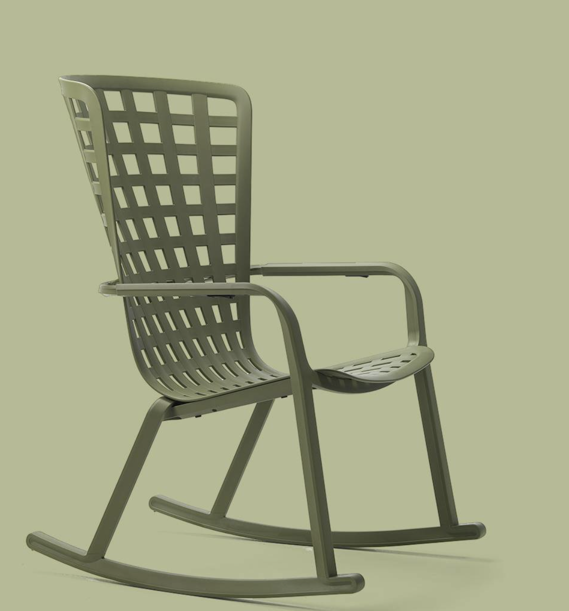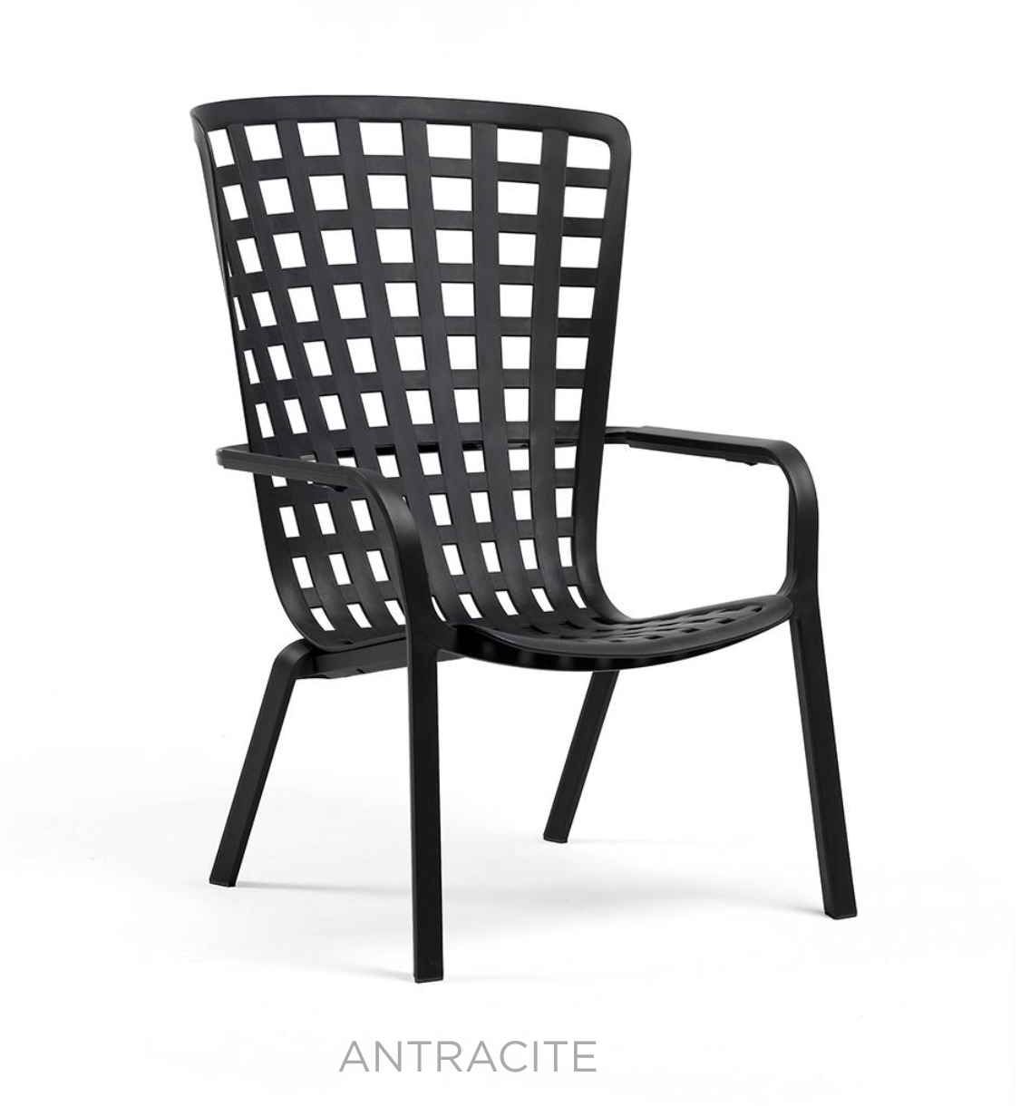 Folio är en utomhusfåtölj tillverkad av perforerad glasfiberharts med ett rutmönster och en matt finish. Fåtöljen har ett omslutande ryggstöd som är sömlöst anslutet till den generöst sänkta sitsen, en unik och förfinad strukturell omfamning som kan lutas tillbaka till två komfortlägen.