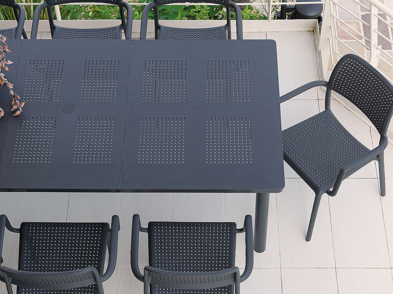 Utdragbart utomhusbord i polypropen.