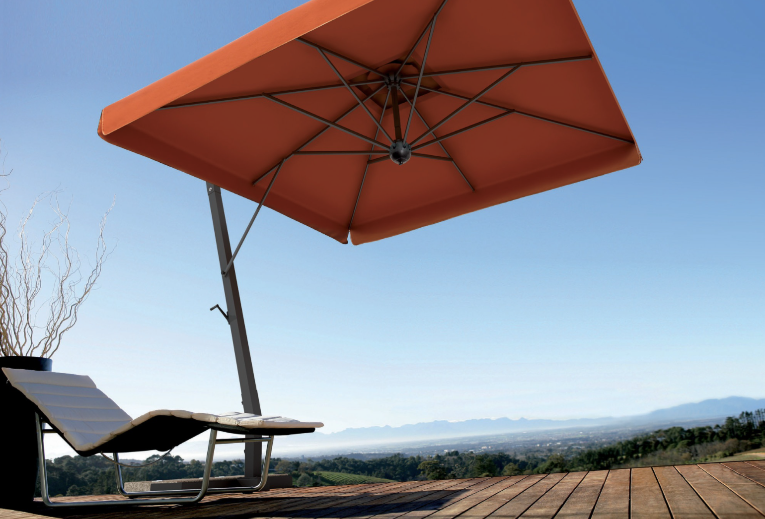 Vindtät ribba för att göra paraplyet mer stabilt och motståndskraftigt i händelse av vind och med möjlighet att luta. 360°C roterbar metallbas ingår. TYG: 350gr/m2 Dralon akryl, vattentät och mögelbehandlad med teflon. Med vindtät skorsten. Lösningsfärgad. 5 års garanti