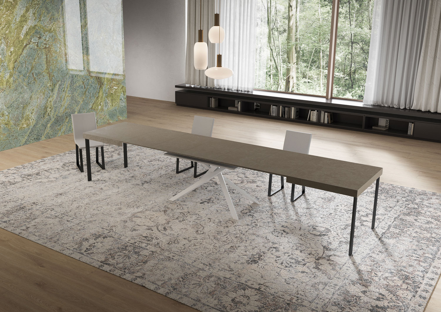| Mått | L.160 P.90 H.77 cm (utdragbar upp till 420 cm) |