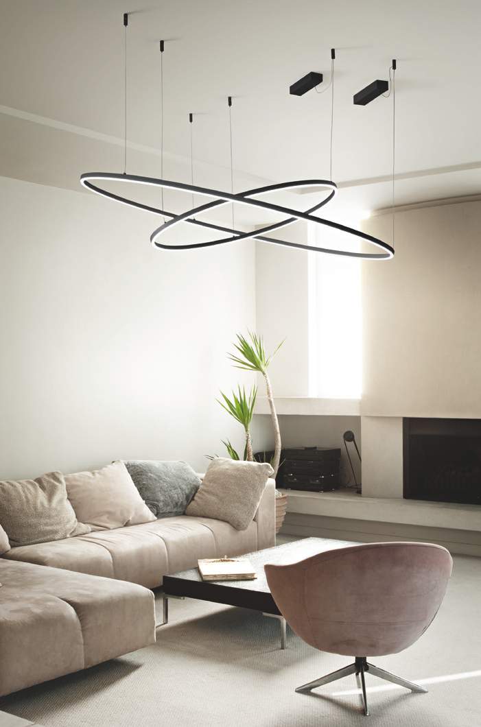 Pendellampa bestående av en tunn ram i mattvit eller svartlackerad aluminium och en opal polykarbonat-diffusor. Finns i fyra olika storlekar. Integrerade LED-lampor, tillgängliga i färgtemperaturerna 2700 K, 3000 K och 4000 K och med ON-OFF-kontroll eller DALI/Push-dimbar, CRI ≥ 90, LED-livslängd 50 000 timmar, IP20-skydd, skyddsklass II.