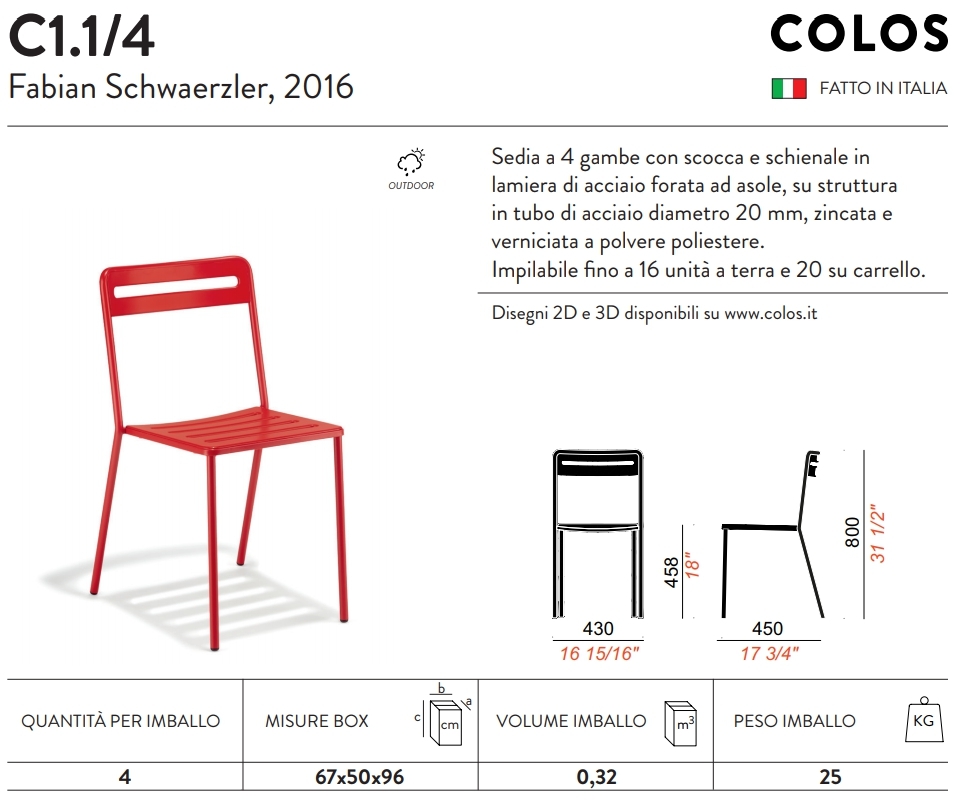 Tillverkad helt i metall, kan C1 väljas för användning i hem och kollektiva miljöer eller till och med utomhus, samtidigt som den behåller sin underförstådda essens.