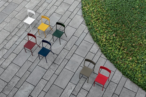 Linjerna i den rörformade metallprofilen, som definierar sits och ryggstöd, ger den en ikonisk karaktär. Tack vare sin enkelhet och noggrant utformade detaljer kan den tillverkas i fyra versioner.