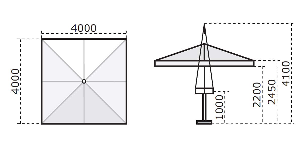 Palladio Teleskopiska 4x4 Scolaro Parasoll - Trädgårdsparasoller, Utomhusparasoller, Solskydd, Utomhusparasoller