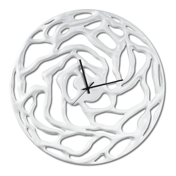 Perforerad klocka i lackerad kompositkeramik med blank yta.