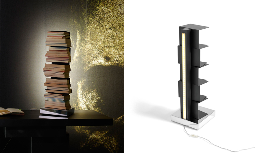Den här versionen av Ptolomeo är både en bokhylla och en lampa, och låter dig inte bara hålla ordning på dina böcker, utan också lysa upp rummet i ett behagligt, mjukt ljus .