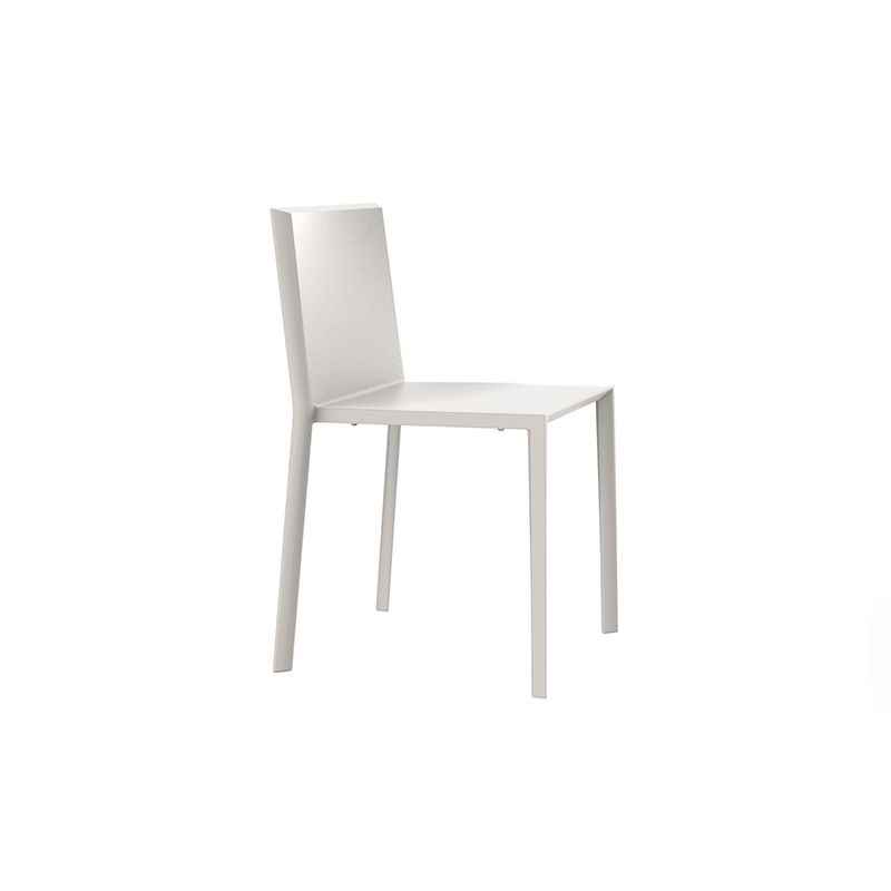 Quartz-stolen från Vondom , designad av Ramón Esteve, utmärker sig för sin moderna, minimalistiska och geometriska design, inspirerad av kristallens renhet. Rena, kantiga linjer skapar en modern visuell effekt som passar perfekt in i både utomhus- och inomhusutrymmen med en minimalistisk och sofistikerad känsla.