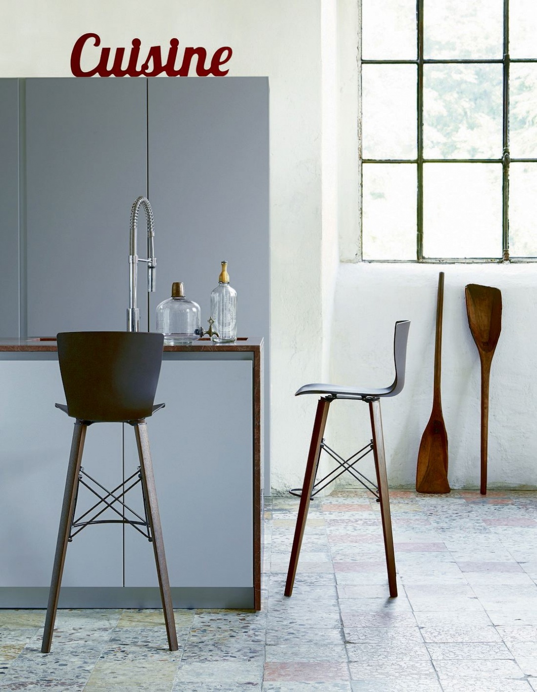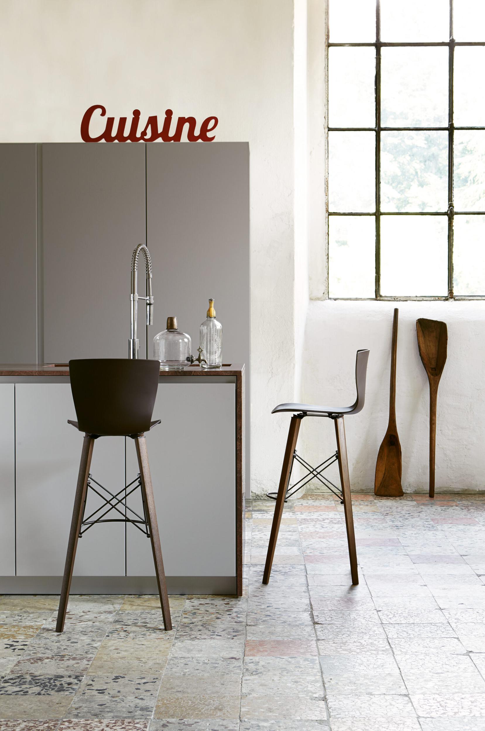 Pall med stomme i ek och stål och mjuk sits i polypropen.