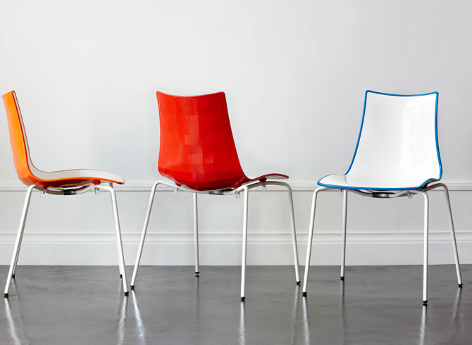 Stommen finns i två varianter: en version med fyra ben i förkromat stålrör, perfekt för inomhusbruk, och en annan med ben i målat stålrör, perfekt för att tåla både inomhus- och utomhusbruk.