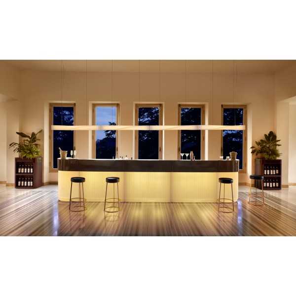Inomhuspendellampa. LED-rör ingår. Transparent kabel. Montering med två stålkablar.