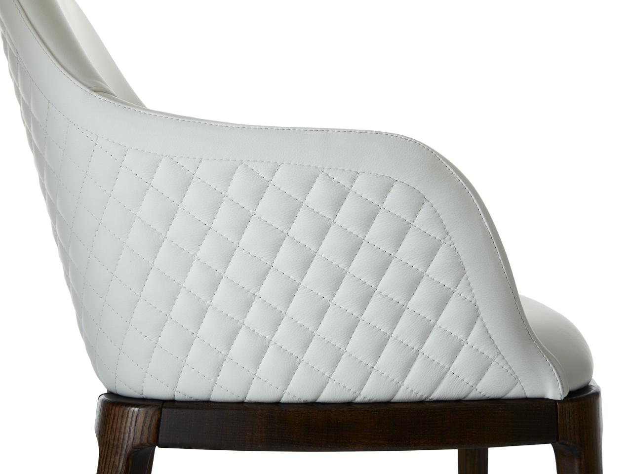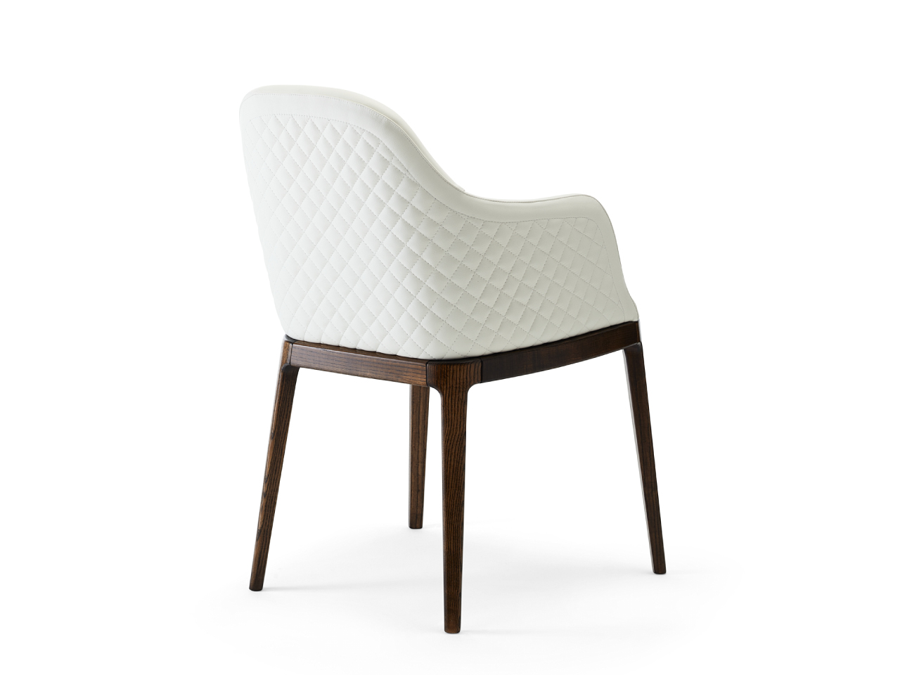 Sofia är en stol som uttrycker träets skönhet genom en smal ram, snidad av massivt trä med precision och harmoni. Den rena och raffinerade designen kompletteras av en mjuk och välkomnande sits, utformad för att erbjuda komfort utan att offra formell renhet. Sofia, som finns med eller utan armstöd, anpassar sig enkelt till både bostads- och kontorsmiljöer, och bibehåller alltid en hög profil vad gäller stil och funktionalitet. Couture-versionen berikar erbjudandet ytterligare med en dyrbar diamantquiltning på baksidan av ryggstödet: en kläddetalj, resultatet av noggrant hantverk, som förstärker projektets identitet. Sofia är mer än bara en stol, utan ett designuttalande som kombinerar proportioner, materialitet och noggrann konstruktion, och konsekvent tolkar Julia Italias filosofi: den perfekta balansen mellan essens och karaktär.