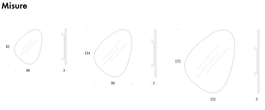Spegeln kan placeras både vertikalt och horisontellt. Den är 3 cm tjock.