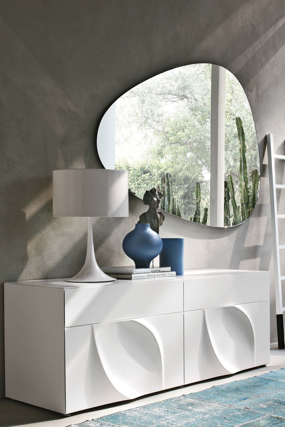 Stones design påminner precis om en sten sedd från perfekt zenit: likt en triangel med extremt rundade hörn tycks Stone framkalla ytterligare en dimension, nämligen den reflektion den vill ge in i dina rum.