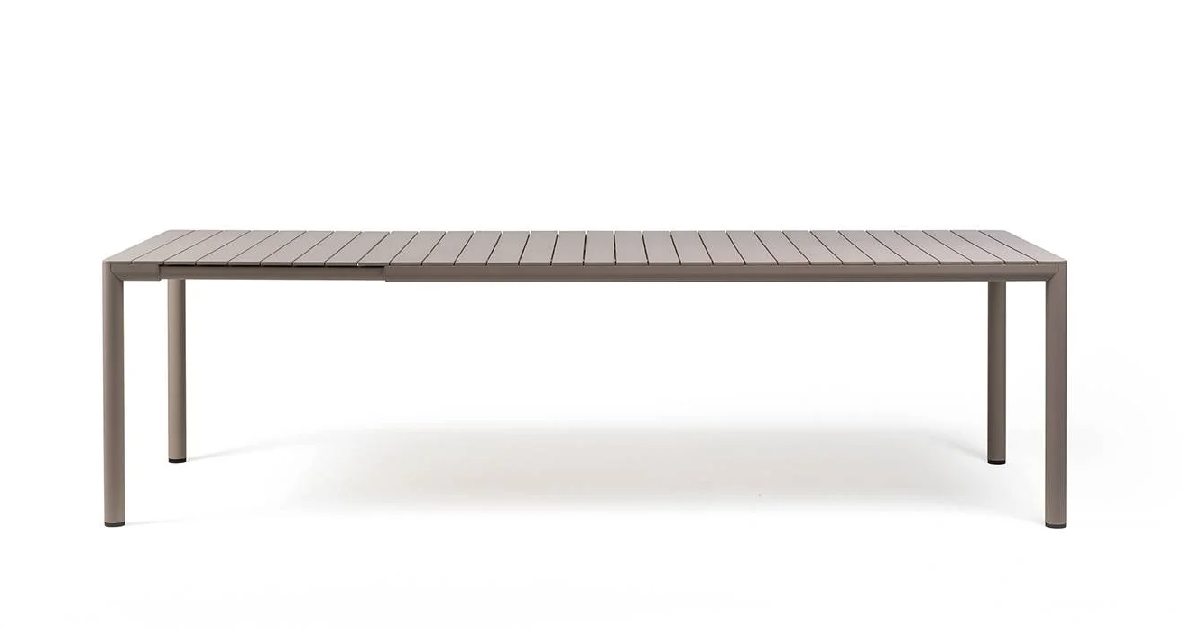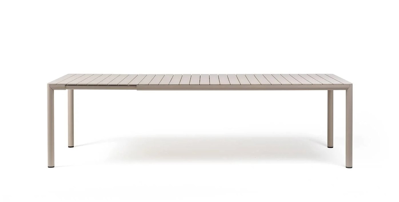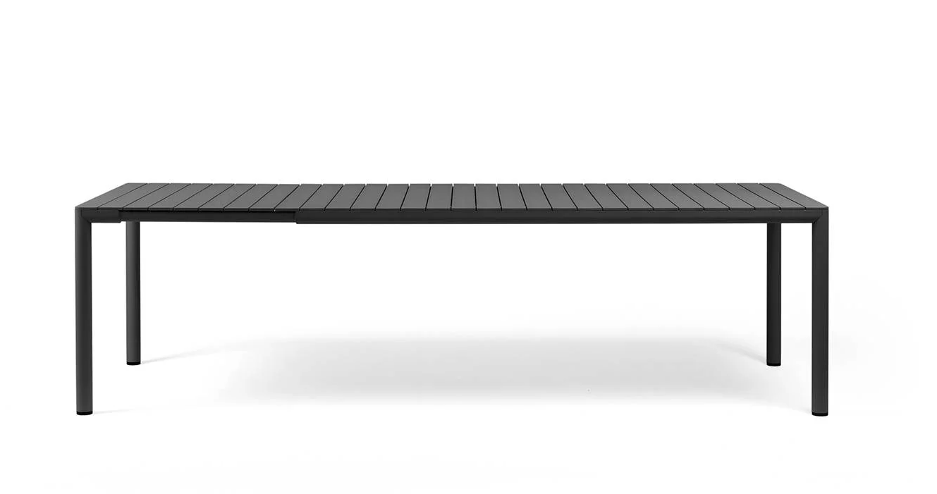 Utdragbart bord. 211 - 275 x 100 x 76,5 cm. Material: UV-behandlad, infärgad glasfiber-polypropenskiva. Lackerad aluminiumram. Matt yta. Återvinningsbar harts. Justerbara fötter.Höjd | Längd | Djup |