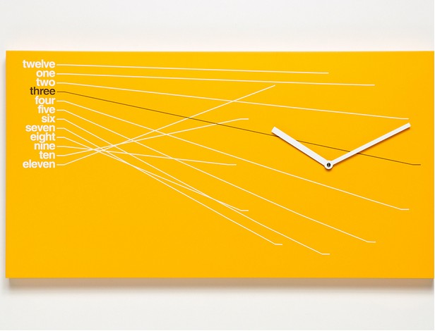 Målad väggklocka i trä. Batteridrivet kvartsurverk.