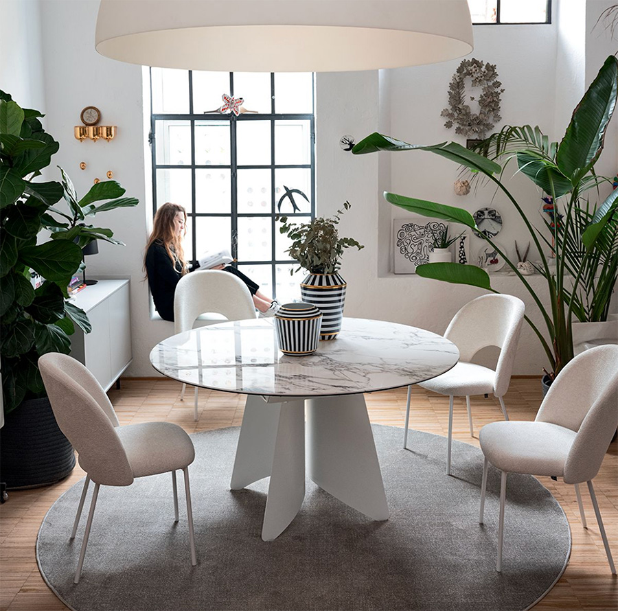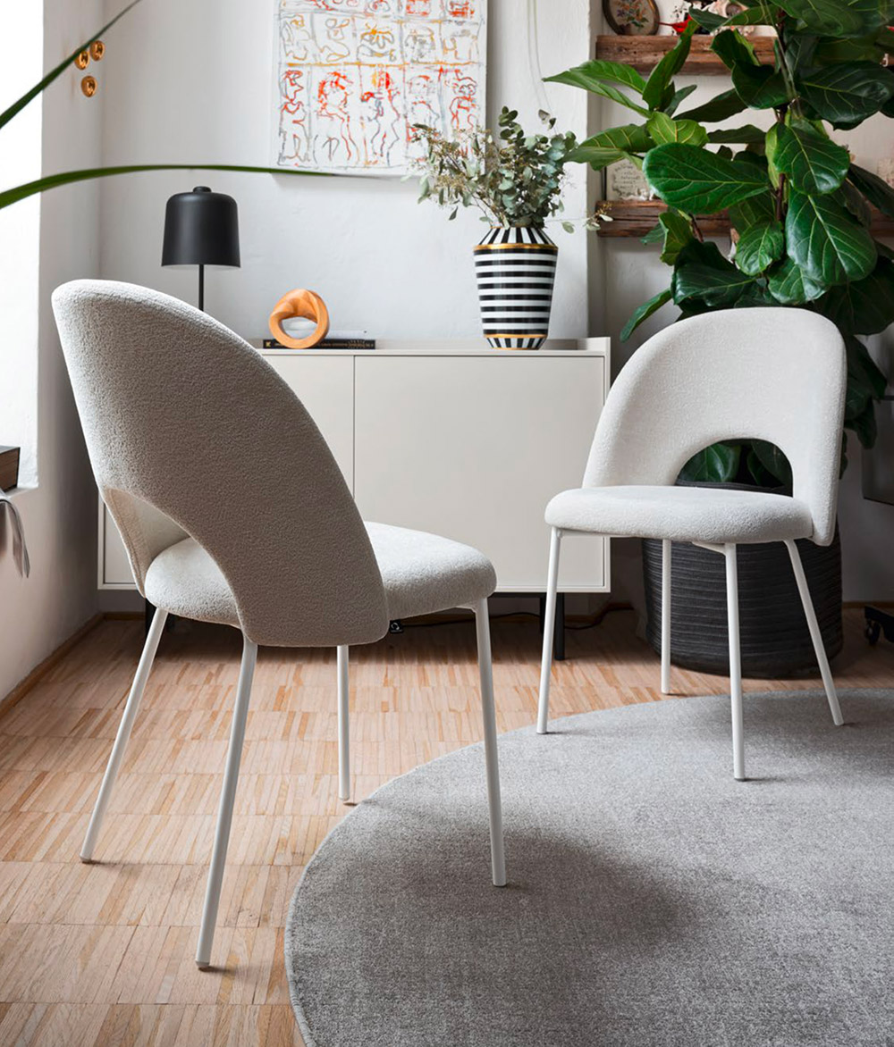 Med ett stort centralt hål , ett omslutande ryggstöd och mjuka linjer representerar denna stol ett nytt kapitel i Tuka-familjens utveckling. Dess retrodesign , inspirerad av 1950-talet , påminner om klassiska snabbmatsstolar, omtolkade med en modern twist för att passa perfekt in i alla moderna miljöer.