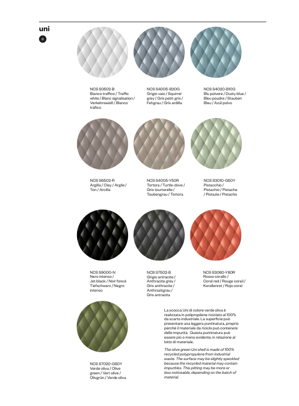 Uni-Ka, en utveckling av varumärket Metalmobil, är en förfinad fåtölj med en omslutande design designad av et al. Skalet är tillverkat av glasfiberförstärkt polypropen och har en elegant textur som förstärker dess estetik.
