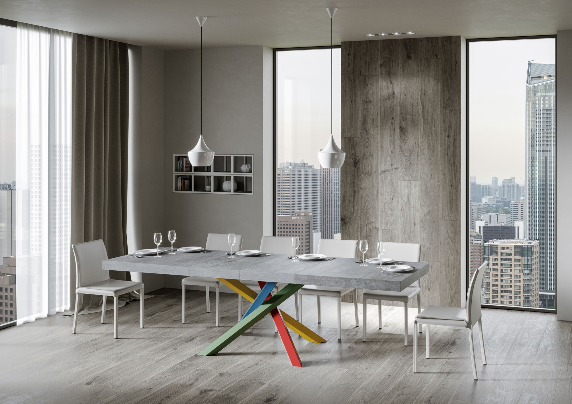 Det utdragbara bordet Volantis Premium på 160 cm, med sin sofistikerade moderna design, anpassar sig till alla inredningar och är det perfekta valet både som matbord och som en inredningsmöbel i vardagsrummet, där du kan välkomna gäster med stil. Det utdragbara bordet Volantis Premium kan gradvis förlängas upp till 264 cm och har plats för 12 personer. Bordet är tillverkat med melaminpaneler, järnben och en fällbar bordsskiva och iläggsskivor. Förlängningssystemet med teleskopskenor i aluminium gör bordet stabilt och robust även när det är helt utfällt, utan behov av ytterligare stöd. När iläggsskivorna inte används passar de inte inuti bordsramen och måste därför förvaras någon annanstans. Produkt från Itamoby Tillverkad i Italien Mått: Stängt bord: B 160 D 90 H 77 cm Längd med 1 förlängning: 212 cm Längd med 2 förlängningar: 264 cm