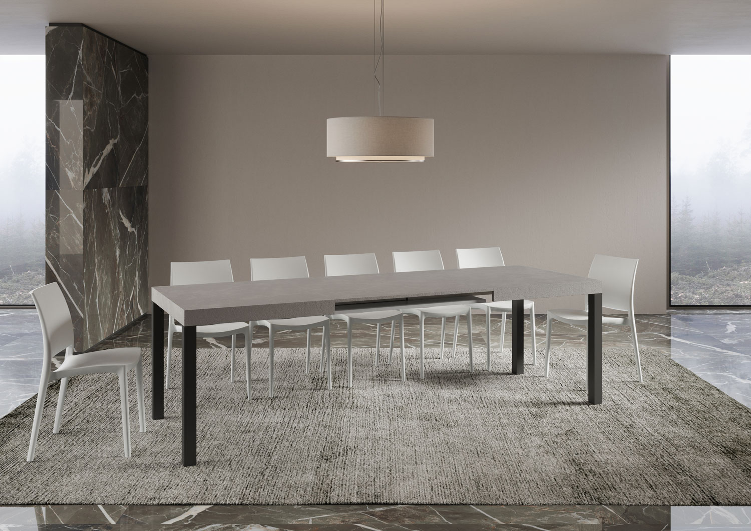 Det 160 cm utdragbara Everyday-bordet, med sin enkla, linjära design, anpassar sig till alla inredningsstilar och är det perfekta valet både som matbord och som inredning i vardagsrummet, där du kan välkomna gäster med stil. Det utdragbara Everyday-bordet kan gradvis förlängas upp till 264 cm och har plats för 12 personer. Tillverkat med melaminpaneler, järnben och en fällbar bordsskiva. Förlängningssystemet med teleskopskenor i aluminium gör bordet stabilt och robust även när det är helt utfällt, utan behov av ytterligare stöd. Förlängningsskivorna är omedelbart redo att användas eftersom de är placerade under huvudbordsskivan. Itamoby-produkt Tillverkad i Italien Mått: Stängt bord: B 160 D 90 H 77 cm Längd med 1 förlängning: 212 cm Längd med 2 förlängningar: 264 cm