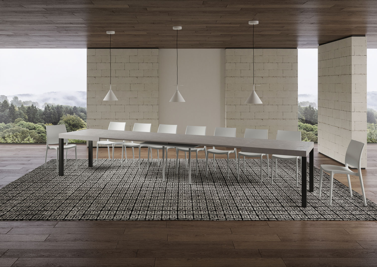 Det 180 cm utdragbara Everyday-bordet, med sin enkla, minimalistiska design, anpassar sig till alla inredningsstilar och är det perfekta valet både som matbord och som en inredningsmöbel i vardagsrummet, där du kan välkomna gäster med stil. Det utdragbara Everyday-bordet kan gradvis förlängas upp till 440 cm och har plats för 18 personer. Bordsskivan är tillverkad med melaminpaneler, järnben och en fällbar bordsskiva, och har ett teleskopiskt utdragssystem i aluminium och ett centralt stöd. Förlängningssystemet, med teleskopskenor i aluminium och ett centralt stöd, gör bordet stabilt och robust även när det är helt utfällt. Två förlängningsskivor förvaras under bordsskivan, redo att användas, medan de återstående tre kan förvaras någon annanstans. Itamoby-produkt Tillverkad i Italien Mått: Stängt bord: L.180 D.90 H.77 cm Längd med 1 förlängning: 232 cm Längd med 2 förlängningar: 284 cm Längd med 3 förlängningar: 336 cm Längd med 4 förlängningar: 388 cm Längd med 5 förlängningar: 440 cm