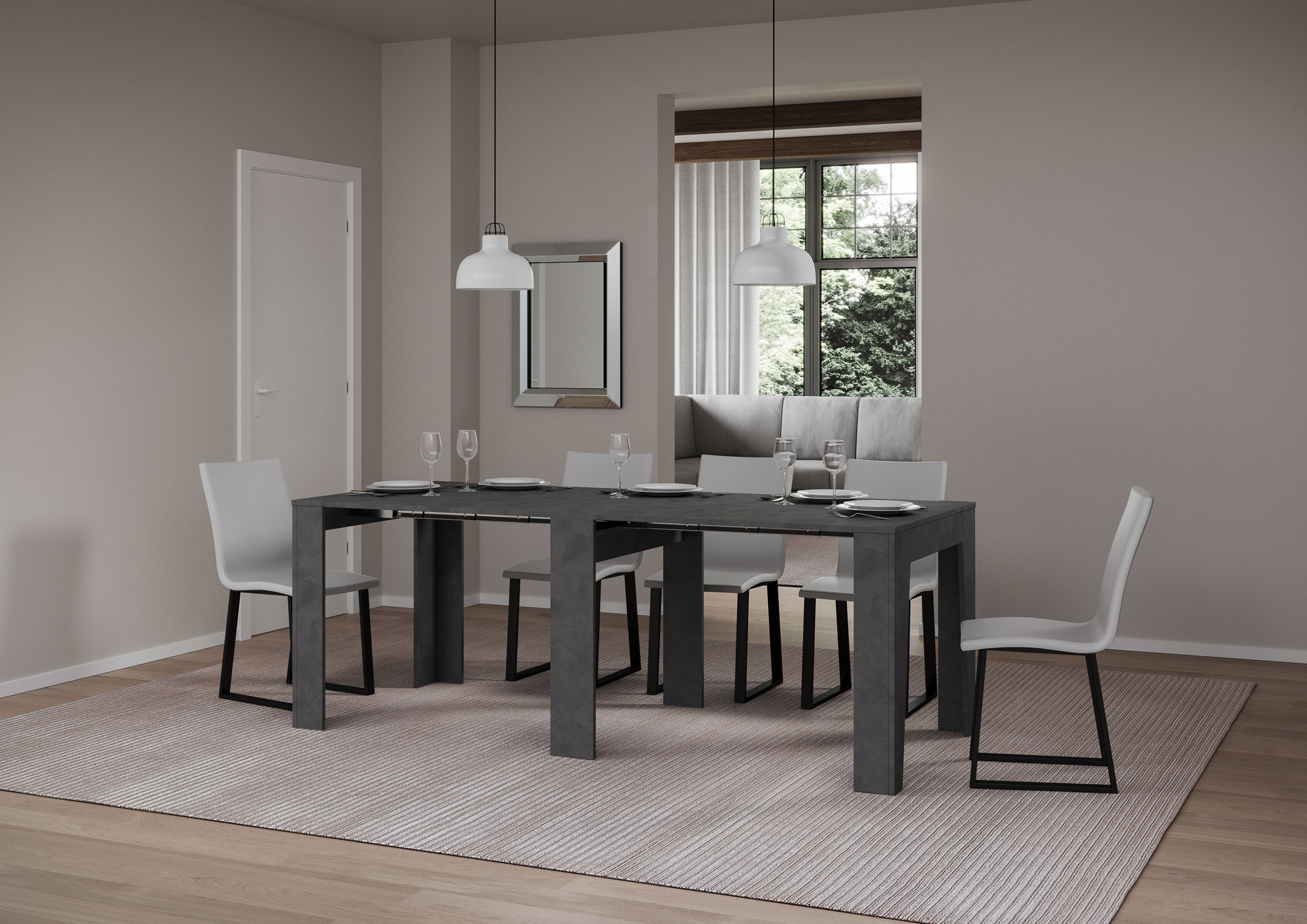 Det utdragbara konsolbordet Narrow är mångsidigt och robust, vilket gör det till ett perfekt tillskott till alla rum i hemmet: hallen, köket, matsalen, vardagsrummet eller hallen. Det utdragbara konsolbordet Narrow kan enkelt omvandlas till ett rymligt matbord upp till 181 cm långt, med plats för åtta personer. Förlängningssystemet är tillverkat av melaminbelagda paneler och har teleskopiska aluminiumskenor och ett centralt stöd, vilket gör konsolbordet stabilt och robust. När konsolbordet är stängt måste förlängningarna förvaras. Itamoby-produkt, tillverkad i Italien. Mått: Stängt konsolbord: B. 90 D. 25 H. 77 cm. Längd med 1 förlängning: 77 cm. Längd med 2 förlängningar: 129 cm. Längd med 3 förlängningar: 181 cm.
