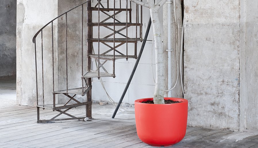 Utomhusvaser med en arkaisk inspiration, som snidade träskålar. Rena linjer för trädgårdsvaser med en enkel, diskret design som redan utstrålar en klassisk känsla.