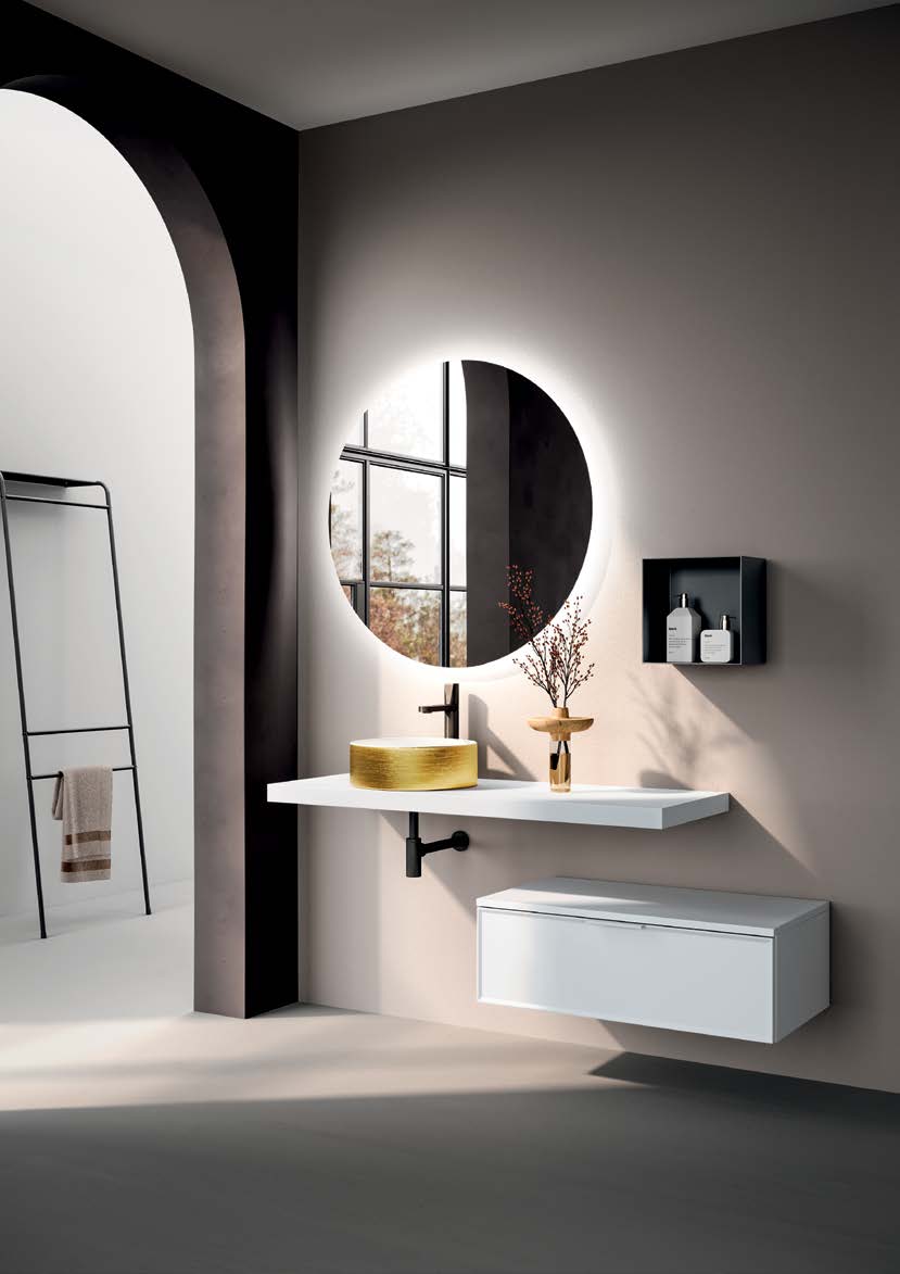 Venere 102-kompositionen från Oltrebagno representerar den perfekta syntesen av modern estetik och funktionalitet. Den är utformad för att ge badrummet elegans och har ett vägghängt handfat med högkvalitativ finish, i kombination med ett minimalistiskt integrerat handfat och en matchande spegel.
