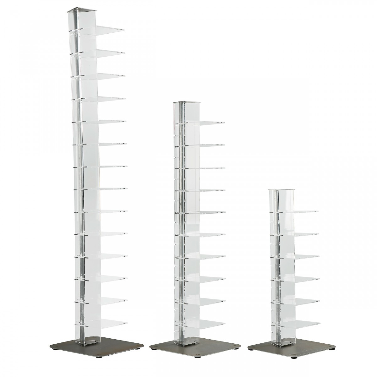 Bokhylla med stomme och hyllor i 6 mm tjock transparent metakrylat.