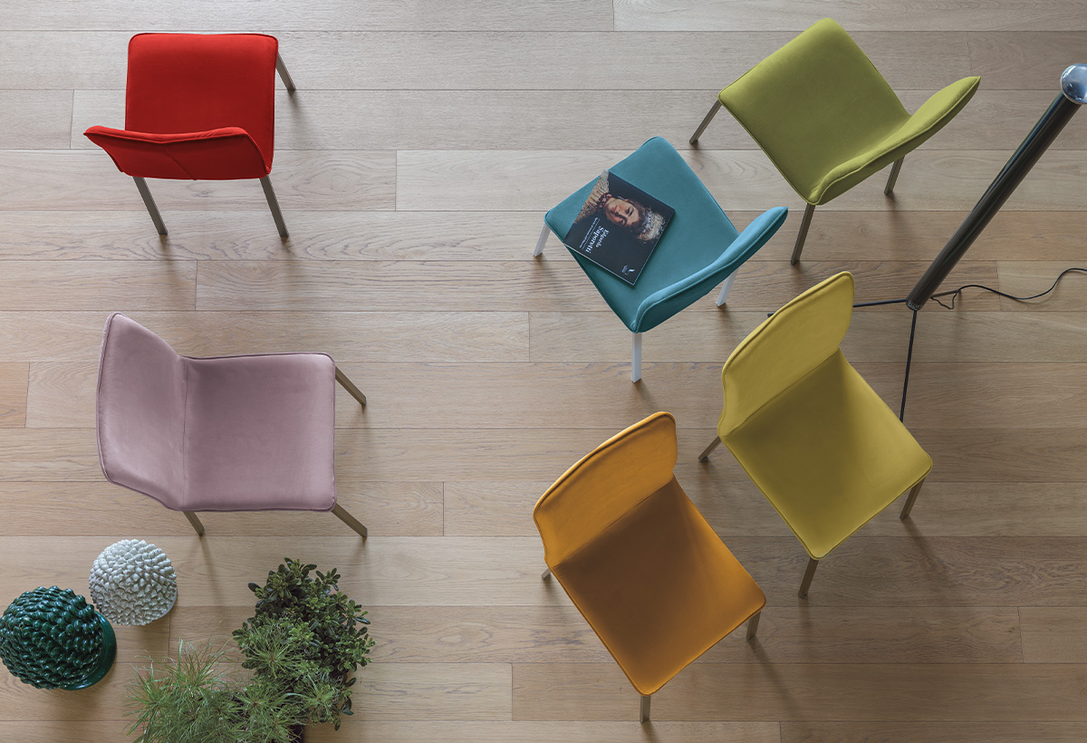 La seduta è una monoscocca disponibile in due finiture: Soft-Touch Vintage, che conferisce un aspetto sofisticato e un comfort morbido, o tessuto microfibra effetto velluto, che aggiunge una nota di lusso e raffinatezza.