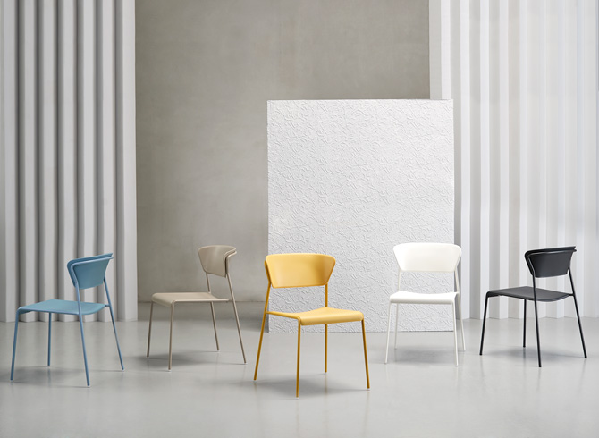 Lisa si distingue per la sua eleganza in ogni contesto. In questa versione, la sedia e lo sgabello sono caratterizzati da seduta e schienale in tecnopolimero, con forme morbide che offrono un piacevole senso di ricchezza e solidità.